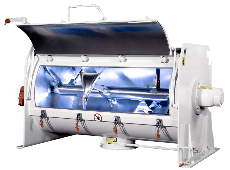 工藝原理——通過羅迪格攪拌元件的的機械作用使物料形成流化床并實現(xiàn)均勻混合